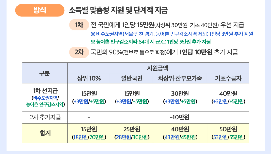 ✅ 일반 국민: 1차 15만 + 2차 10만 = 25만원