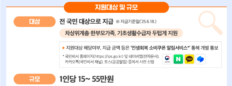 - ✅ 일반 국민: 1차 15만 + 2차 10만 = 25만원