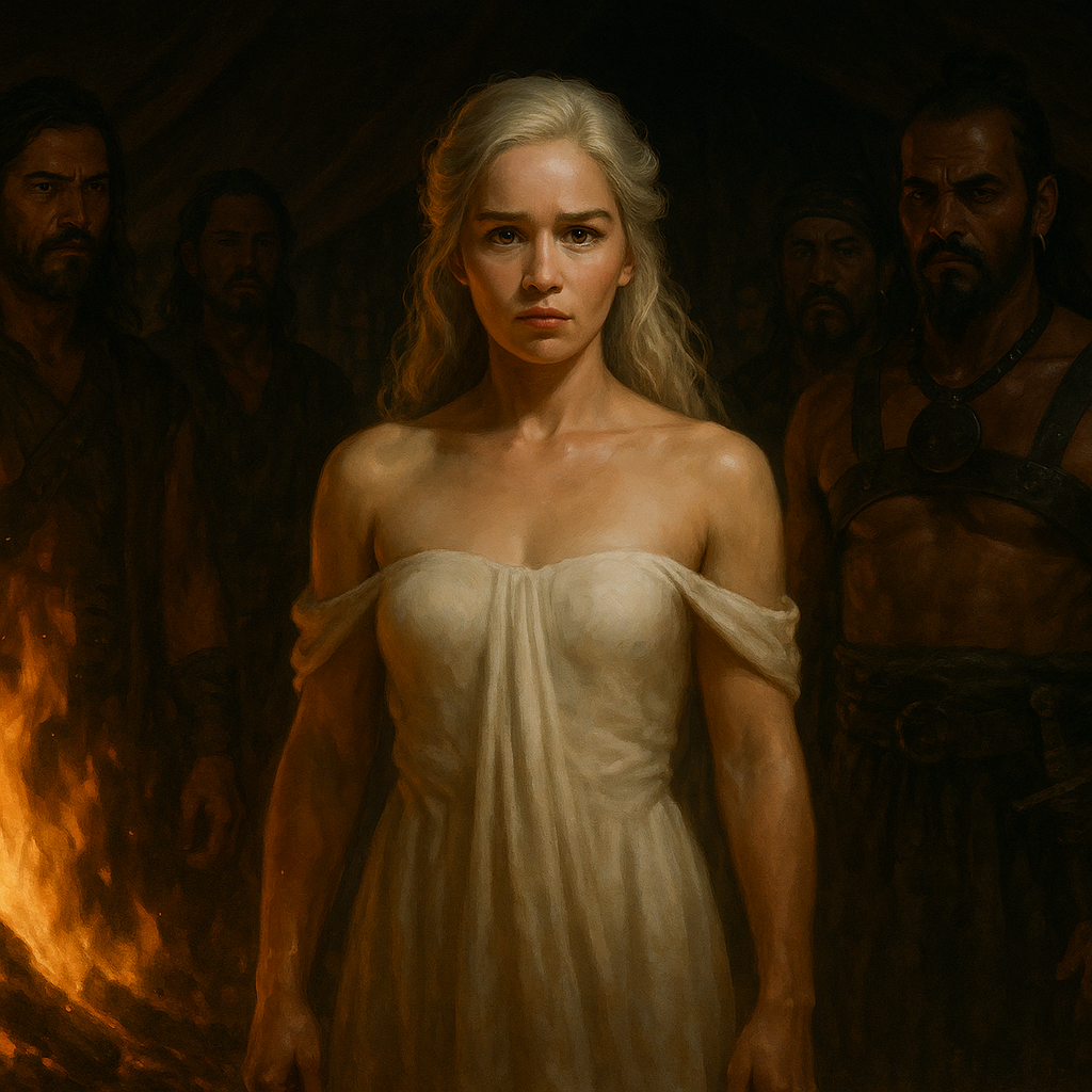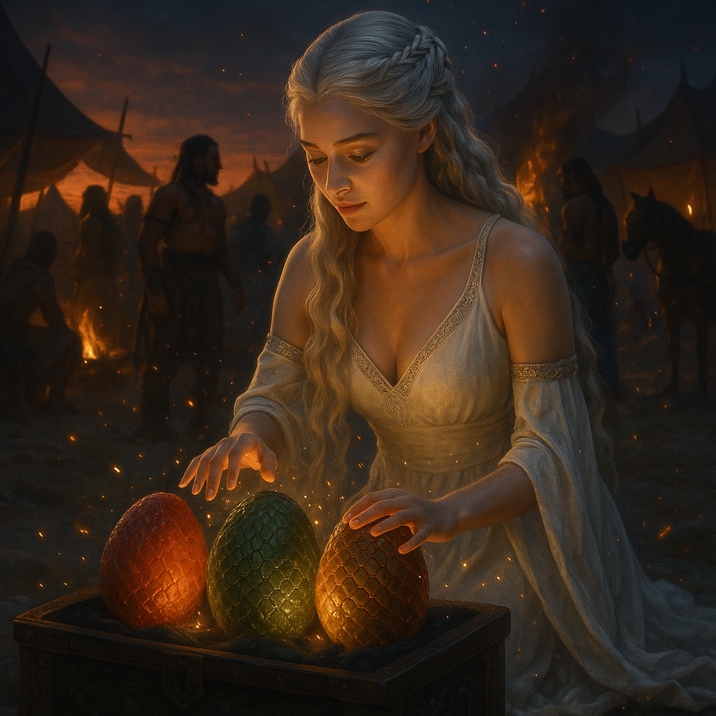 에소스 대륙의 펜토스, 일리리오 모파티스의 저택에서 시작된 데너리스의 여정은 단순한 정치적 도구에서 진정한 여왕으로의 변화였다. 드래곤스톤에서 폭풍우가 치던 밤에 태어난 그녀는 태생부터 운명의 무게를 짊어지고 있었다. 비세리스 오빠의 그림자 아래에서 자란 그녀는 처음엔 두려움 속에 살았지만, 그 안에는 이미 용의 피가 끓고 있었다.
